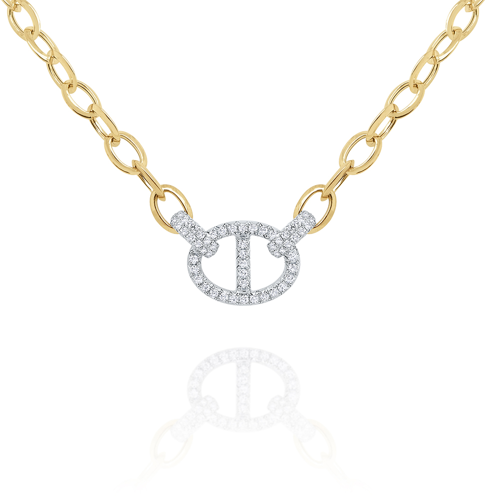 A diamond pave mariner link is held by a bold link chain. Pair with the bracelet B5881 to complete the look.