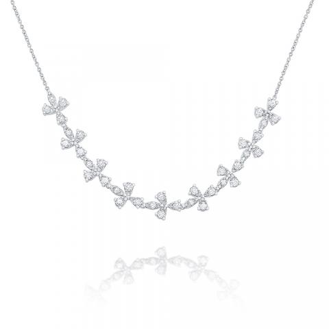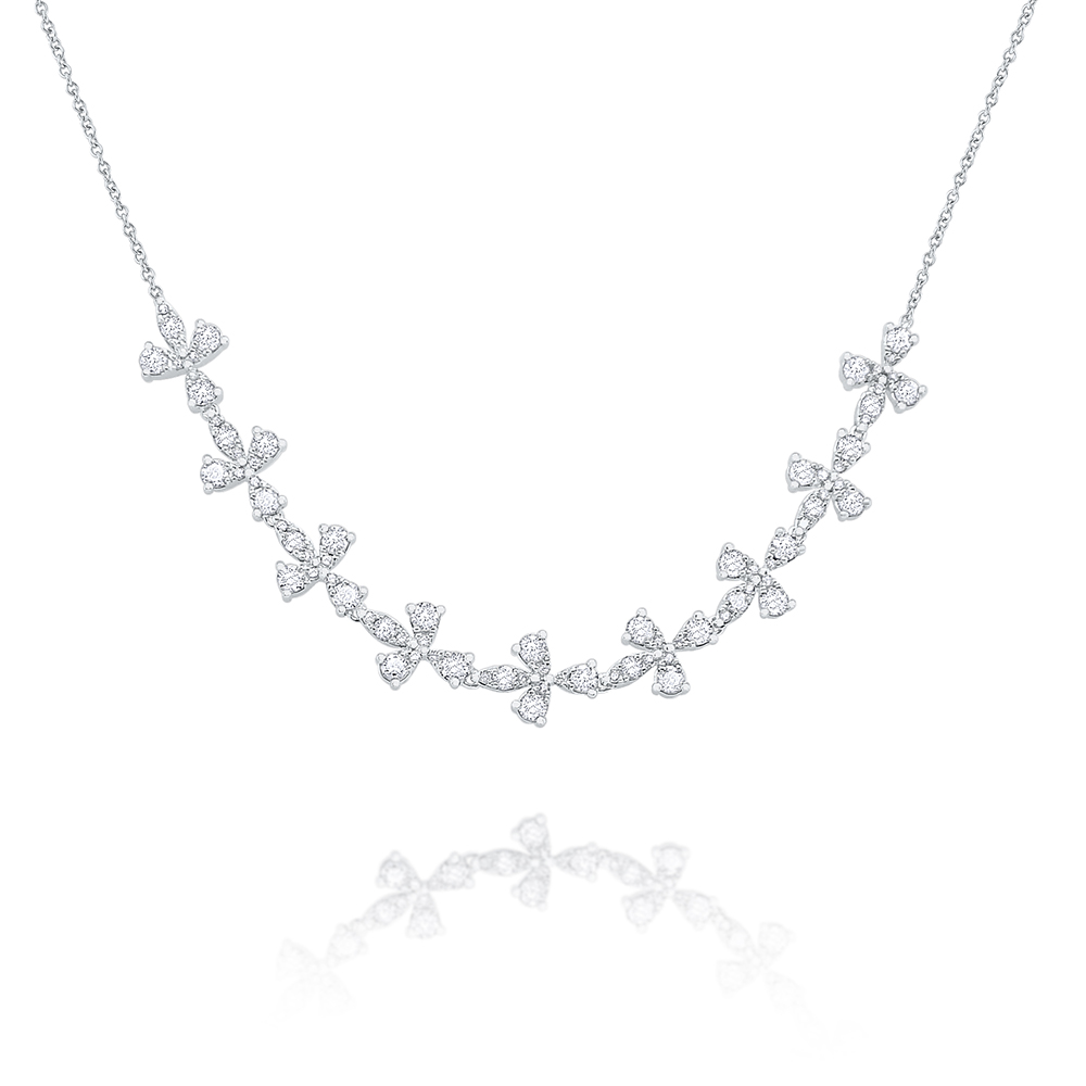 Nine diamond floral designs form an elegant curve on an adjustable 16-17-18" chain.