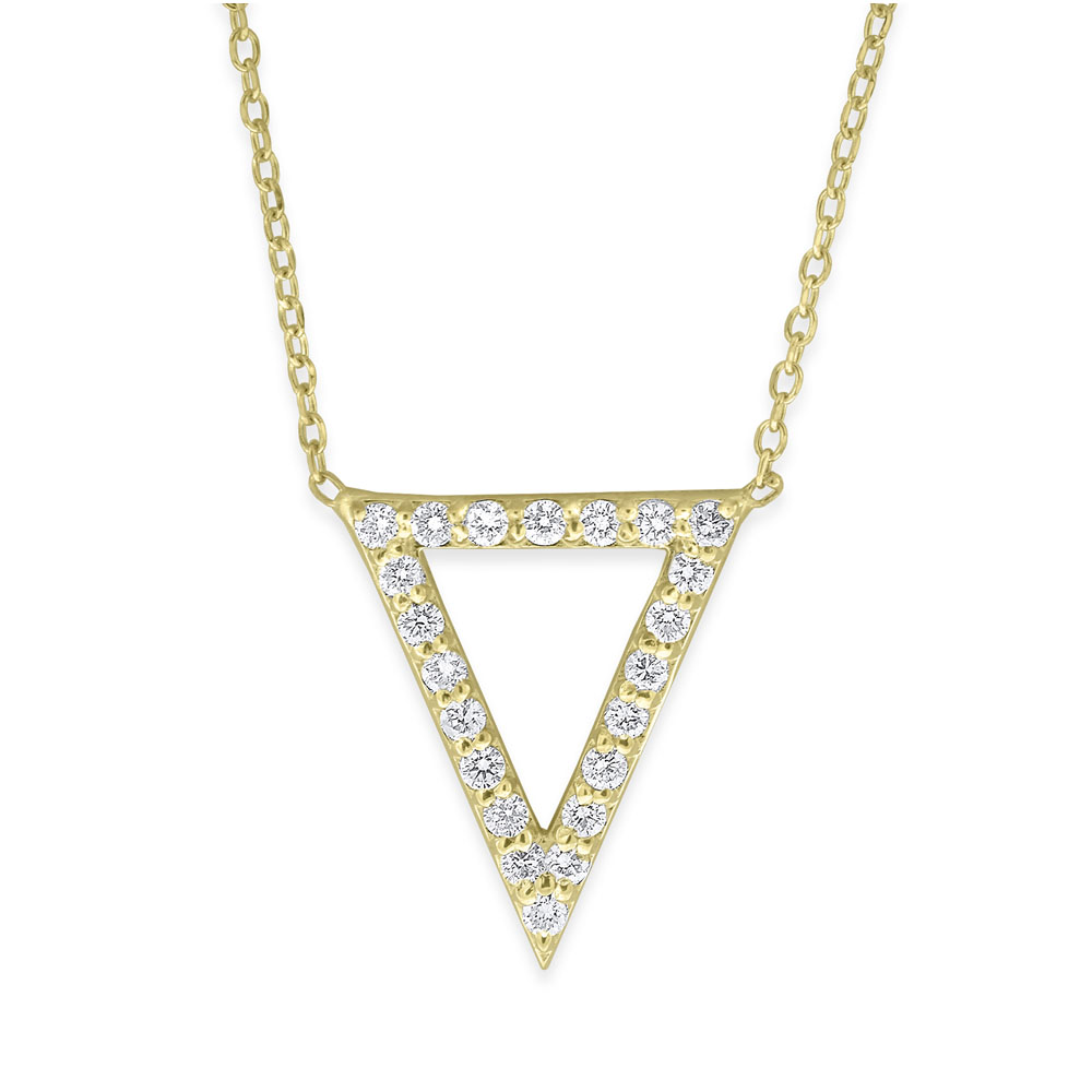 Diamond Open Triangle Necklace in 14K Yellow Gold with 22 Diamonds Weighing .22ct tw