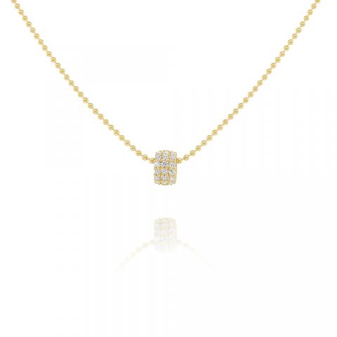 Diamonds sparkle and shine in this simple gold rondel on an 18" bead chain.