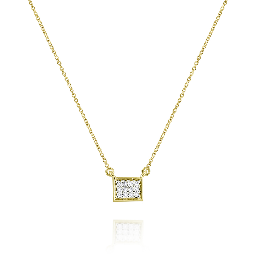 A yellow gold chain compliments a white diamond geometric rectangle, perfect for layering with your other KCD favorites.