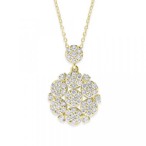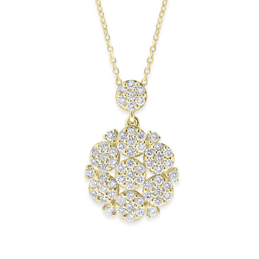 Diamond Floral Necklace in 14K Yellow Gold with 62 Diamonds Weighing .52ct tw