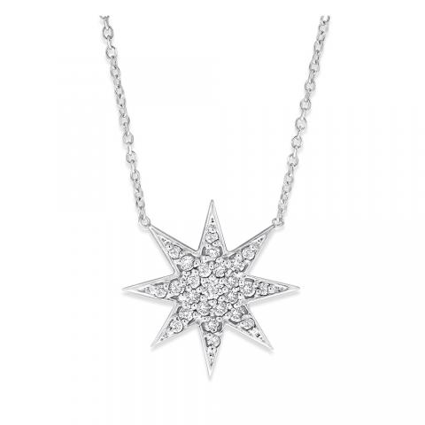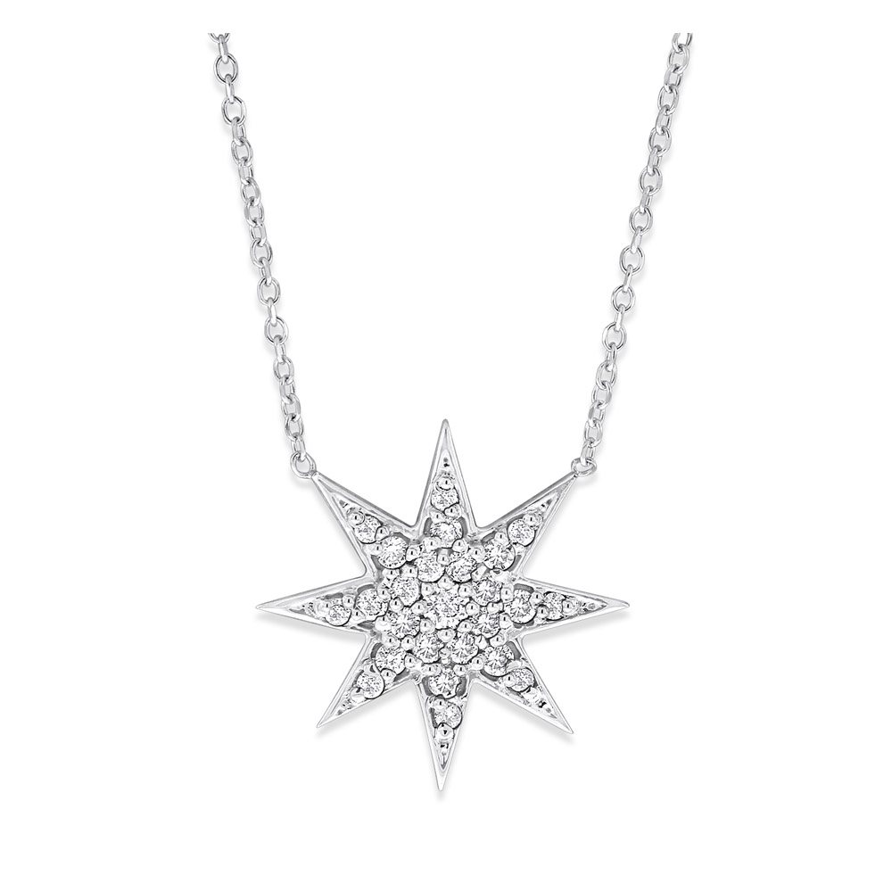 Diamond Starburst Necklace in 14K White Gold with 25 Diamonds Weighing .23 ct tw