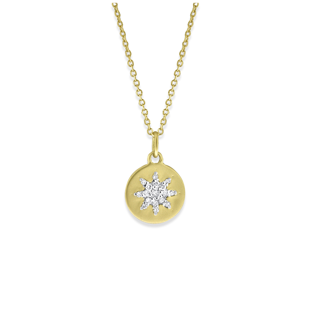 Diamond Starburst Mini Disc in 14K Yellow Gold with 17 Diamonds Weighing .11 ct tw