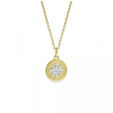 Your time to shine is now! Place this Diamond Starburst Mini Disc round your neck and step into the spotlight. Shown here in 14K yellow gold with 17 Diamonds Weighing .11 ct tw. Be noticed and let this adorable necklace compliment your positive attitude and sweet nature.
