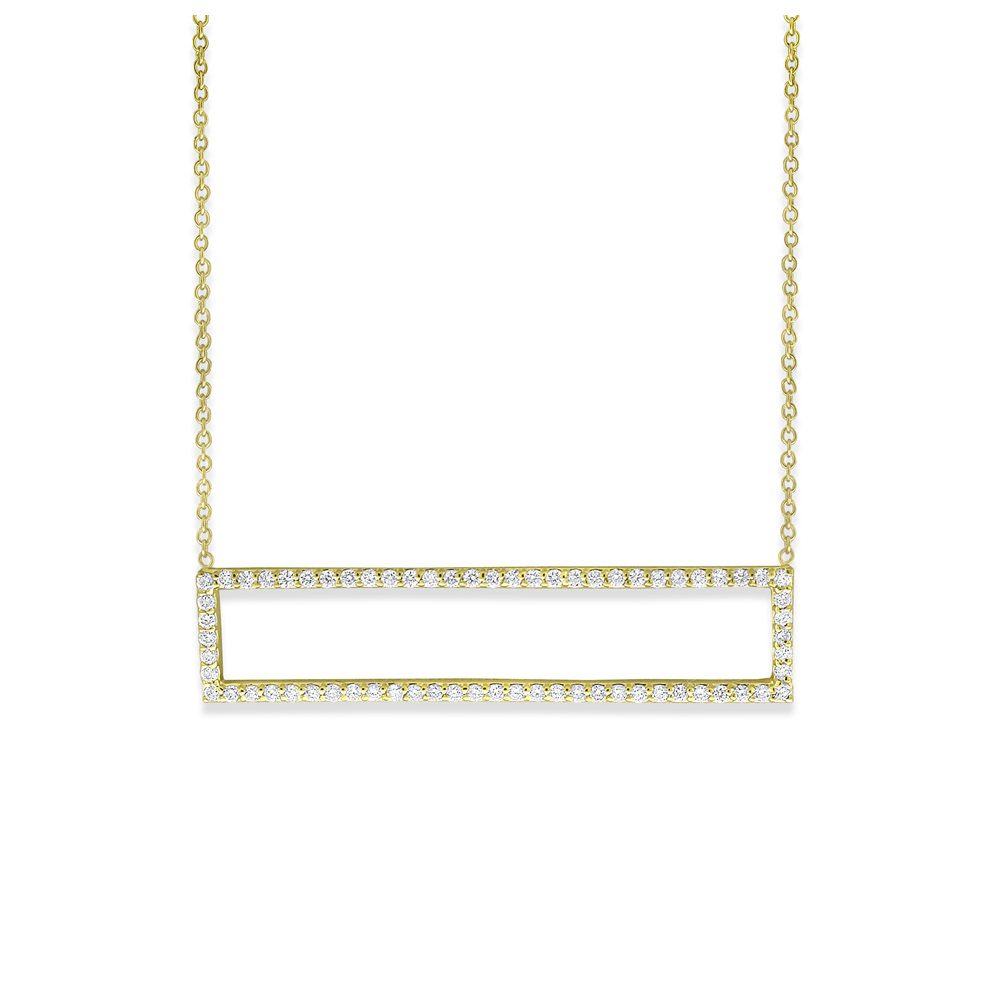 Diamond Horizontal Open Rectangle Necklace in 14K Yellow Gold with 68 Diamonds Weighing .68 ct tw