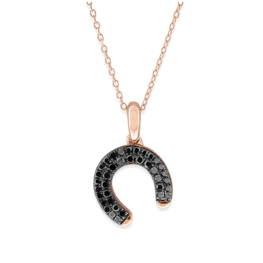 Black Diamond Horseshoe Necklace in 14K Rose Gold with 37 Diamonds Weighing .25 ct tw