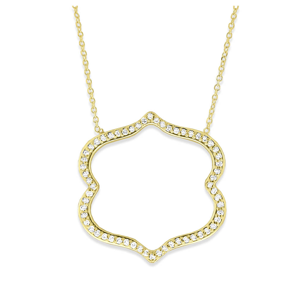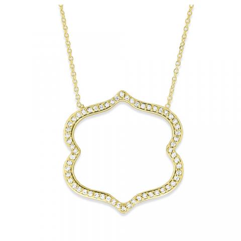 This regal diamond and gold necklace is fit for a queen. Set in 14K yellow gold with 60 flickering diamonds weighing .27 ct tw, show her that she is majestic when you gift her with this beautiful necklace. She will make you her king in no time.