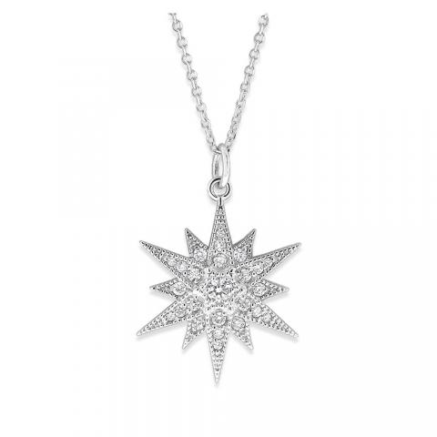Diamond Starburt Necklace in 14K White Gold with 25 Diamonds Weighing .24 ct tw
