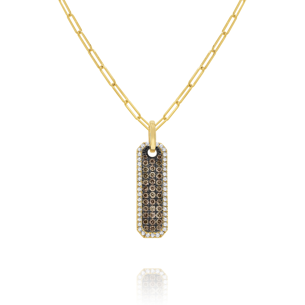 White and champagne diamonds sparkle in this trending dog tag pendant on an 18" chain.