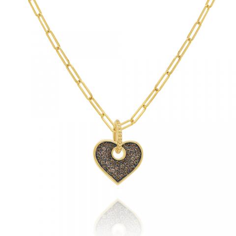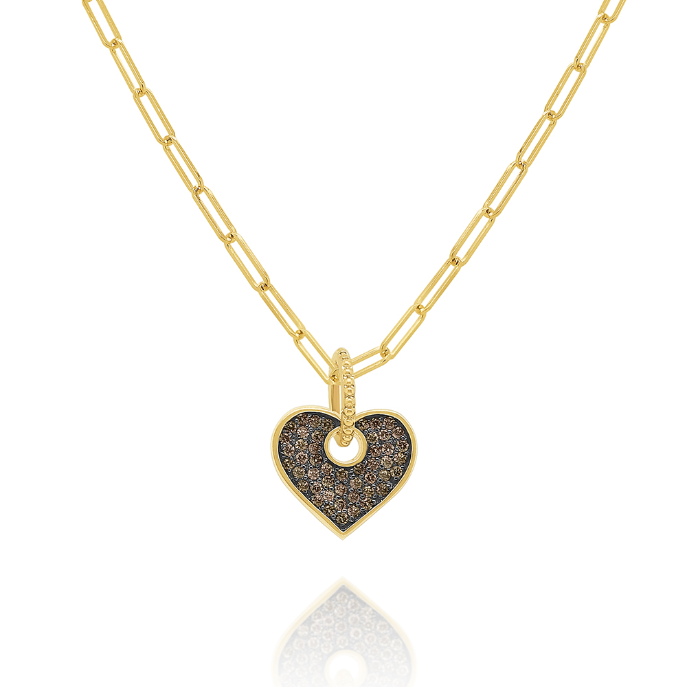 A 14k golden heart set with champagne diamonds dangles on a modern adjustable paperclip chain.