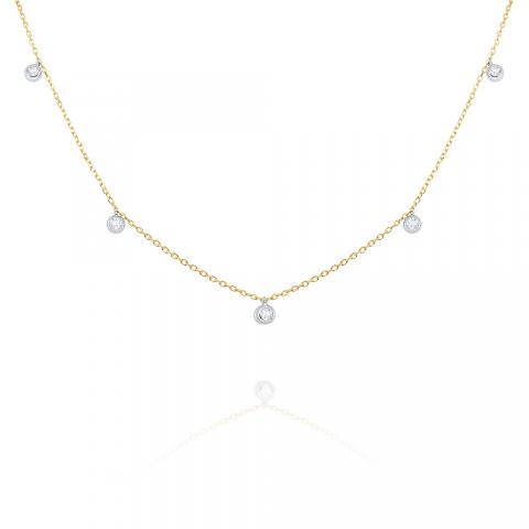 14k Gold and Diamond Drops Necklace, 17"