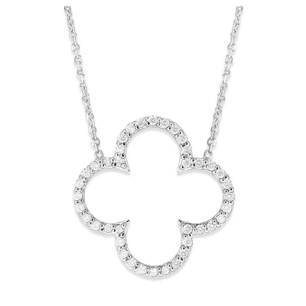 Diamond Open Clover Necklace in 14K White Gold with 40 Diamonds Weighing .35 ct tw