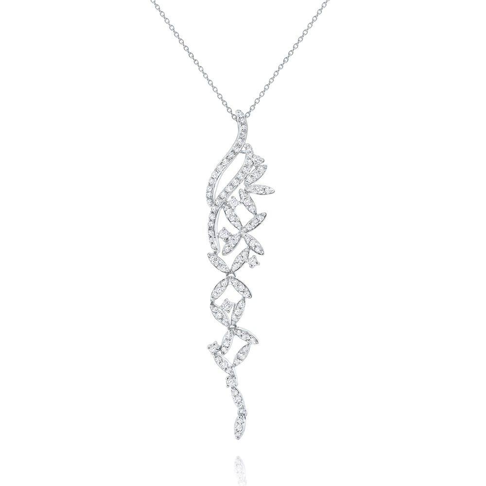 Diamond Abstract Floral Pendant Necklace Set in 14 Kt. White Gold