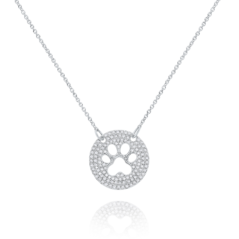 Show your love for your four legged friends with with this diamond dog paw necklace on an adjustable 16-17-18" chain.