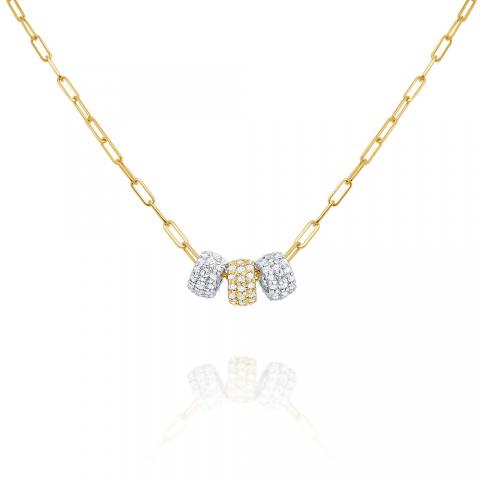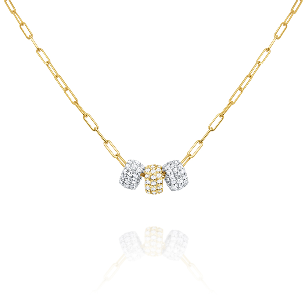 14k Gold and Diamond Triple Rondel Necklace, 18"