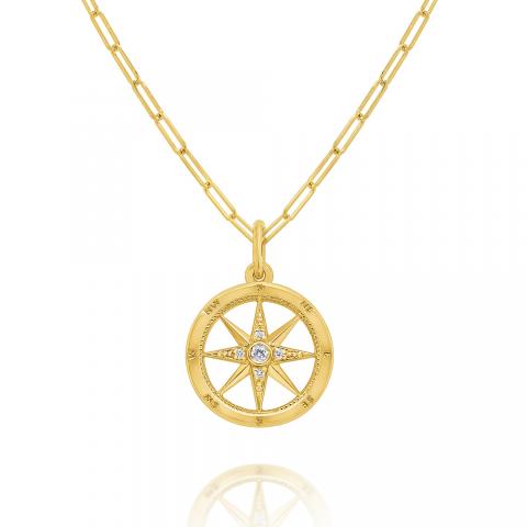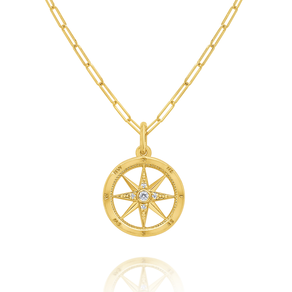 Our gold and diamond compass necklace represents present moment awareness. When you are in alignment, you are ready for anything! Wear it solo or stack it with or other spiritual necklaces.
