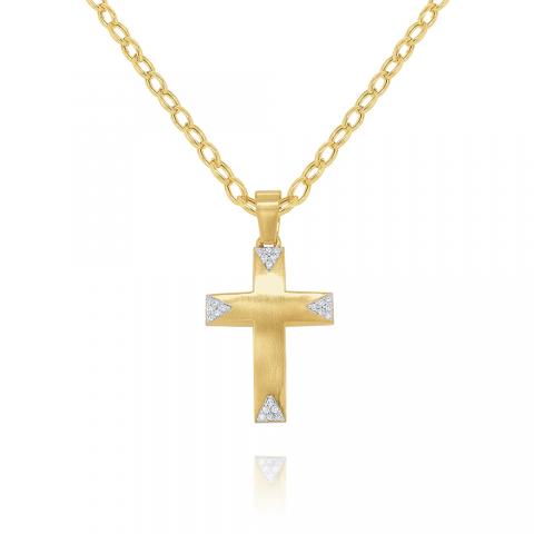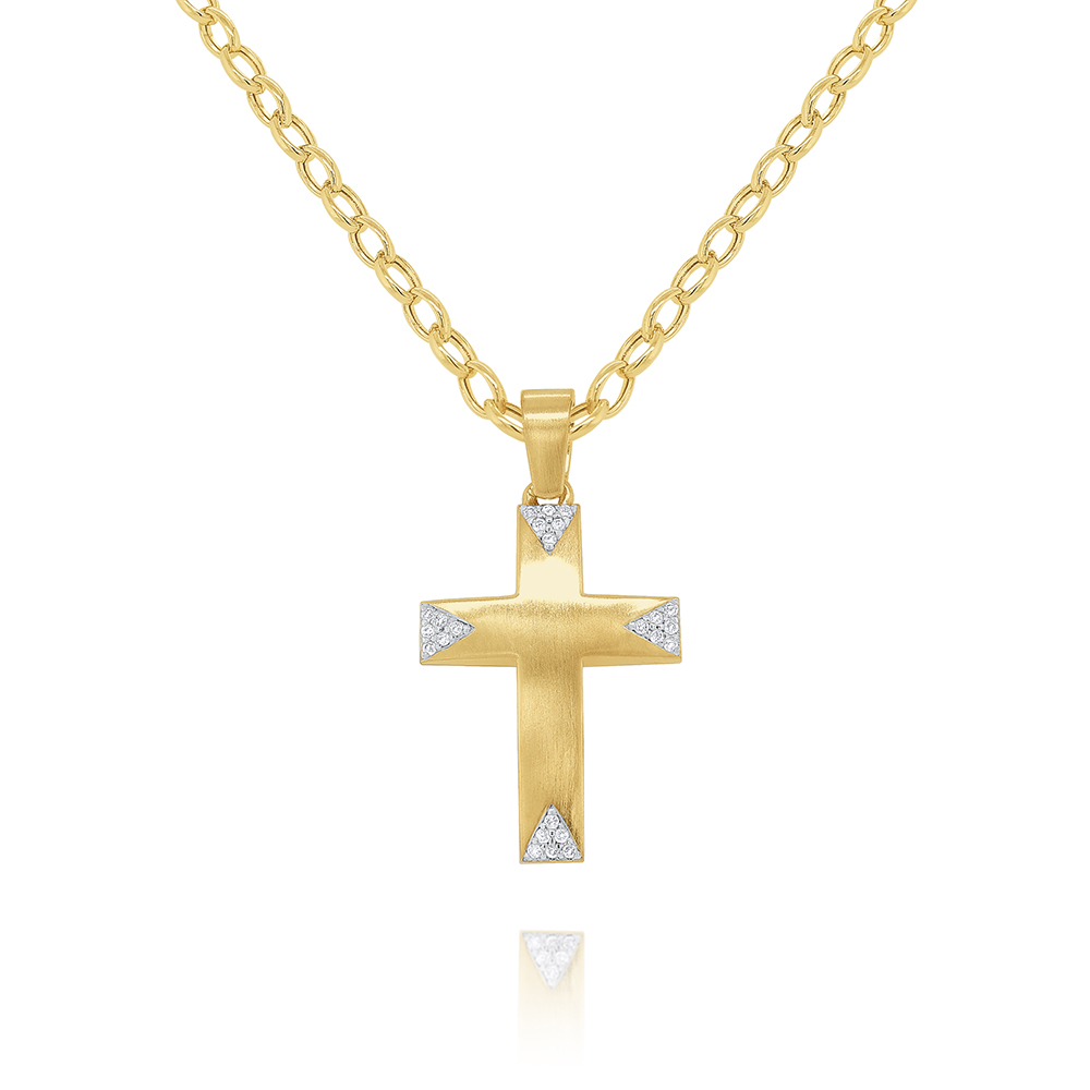 14k Gold and Diamond Bold Modern Cross