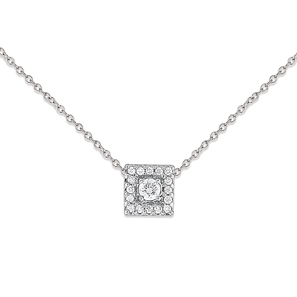 Bold and eye-catching, this square diamond fashion necklace has an intricate design featuring 17 twinkling .15 ct tw diamonds that really made a big impression. For the discerning fashionista, this fantastic piece is an absolute must-have in her jewelry collection. It is shown here in gorgeous white gold for a classic timeless look.