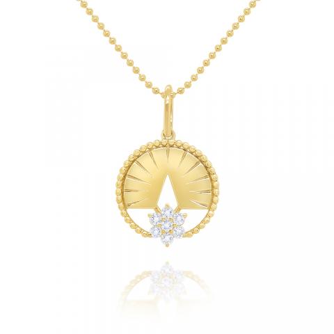 14k Gold and Diamond Round Sunray Necklace