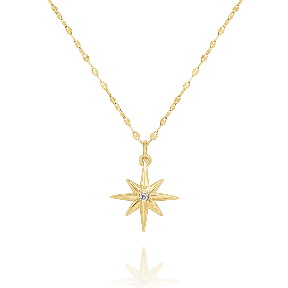 Starlight, starbright....light up your neckline with this gold and diamond starburst pendant on a glittering 18" chain.
