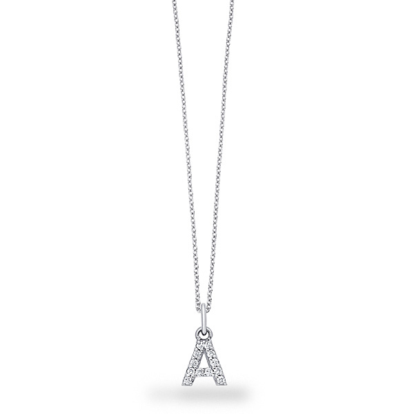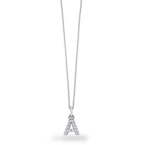 Diamond Baby Block Initial "A" Necklace in 14k White Gold with 12 Diamonds weighing .10ct tw.