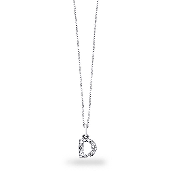 Diamond Baby Block Initial "D" Necklace in 14k White Gold with 13 Diamonds weighing .11ct tw.