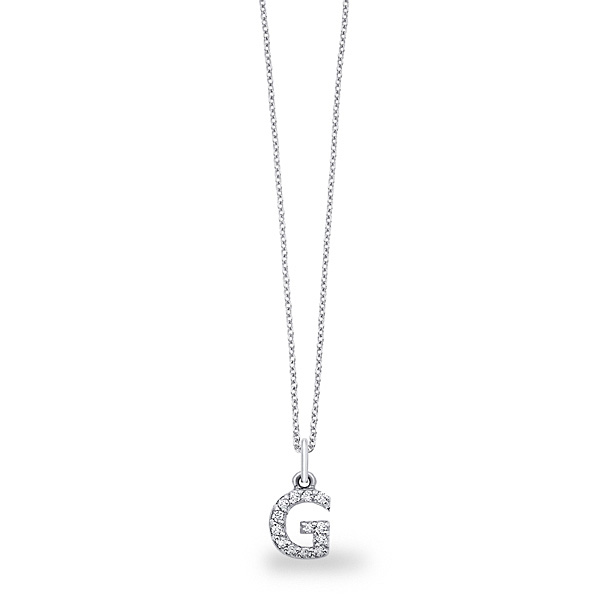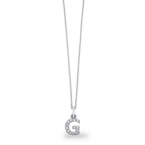 Diamond Baby Block Initial "G" Necklace in 14k White Gold with 13 Diamonds weighing .11ct tw.