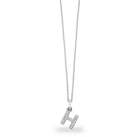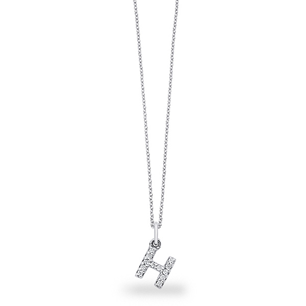Diamond Baby Block Initial "H" Necklace in 14k White Gold with 12 Diamonds weighing .10ct tw.