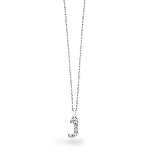 Diamond Baby Block Initial "J" Necklace in 14k White Gold with 7 Diamonds weighing .06ct tw.
