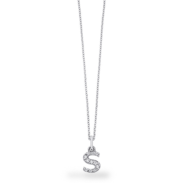Reflect your fun and playful personality in your jewelry with this sweet and charming initial necklace. This diamond baby block initial "S" necklace contains 11 gorgeous 09 diamonds that sparkle and shine in the light. It is perfect for a Sadie, Sarah or Sharon with sophistication and style. This necklace is shown here in 14K white gold.