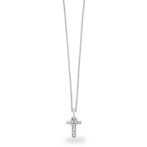 Diamond Baby Block Initial "T" Necklace in 14k White Gold with 8 Diamonds weighing .06ct tw.
