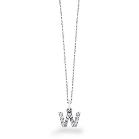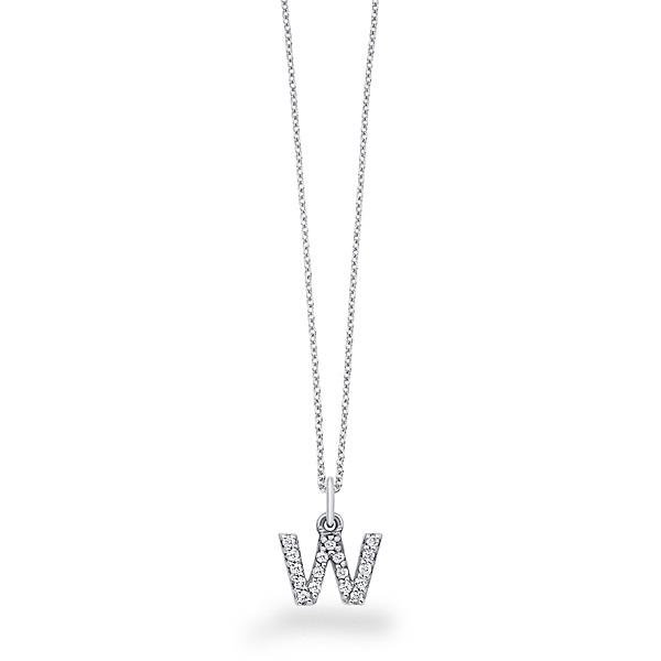 Diamond Baby Block Initial "W" Necklace in 14k White Gold with 17 Diamonds weighing .14ct tw.
