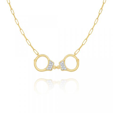 14k Gold and Diamond Handcuffs Necklace, 18"