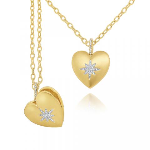 14k Gold and Diamond Starburst Heart Remembrance Locket