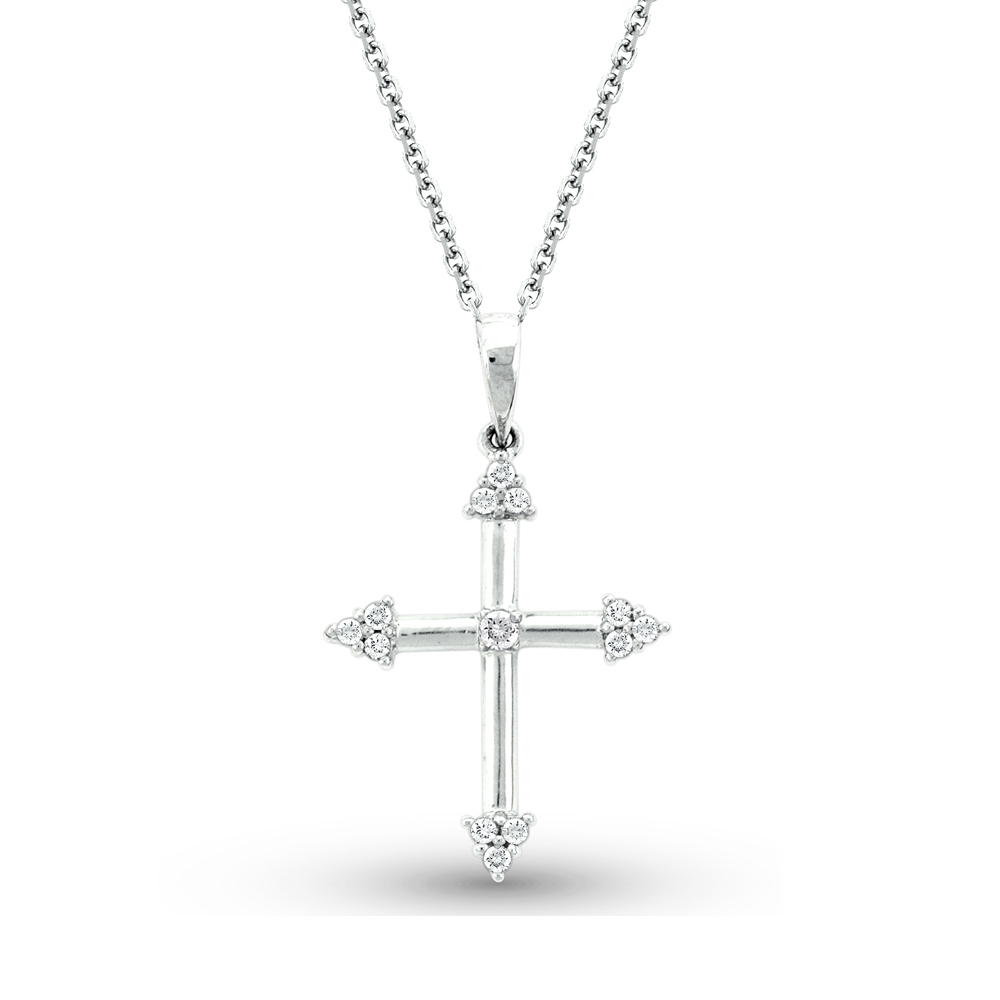 Diamond Cross Necklace in 14K White Gold with 13 Diamonds Weighing .12ct tw