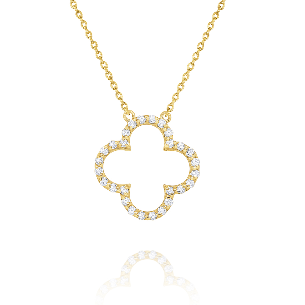 Carry your luck with you....28 diamonds shimmer and shine in this 14k gold clover necklace. Layer with your other lucky charms.