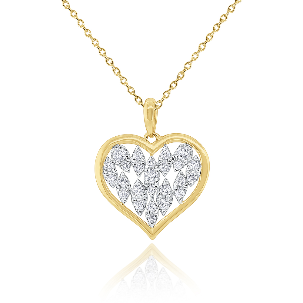 The timeless classic heart takes on a modern unique look. Diamond marquis shapes are framed in a golden heart on a 16” chain. Available in two additional sizes, N3900 and N3881.
