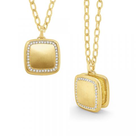 14k Gold and Diamond Cushion Shape Remembrance Locket