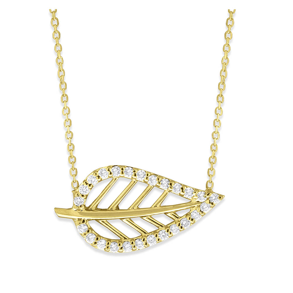 Diamond Leaf Necklace in 14K Yellow Gold with 25 Diamonds Weighing .25 ct tw