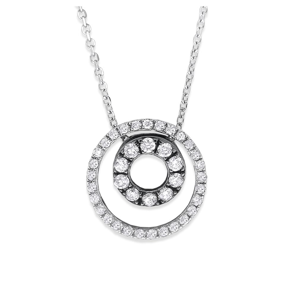 Diamond Double Circle Necklace in 14K White Gold with 39 Diamonds Weighing .32 ct tw
