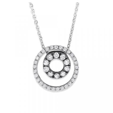 This diamond double circle necklace is gorgeous. Set in 14K white gold with 39 shiny diamonds weighing .32 ct tw, this impressive necklace really packs a punch. Perfect for any occasion, this is the necklace will enhance any ensemble.