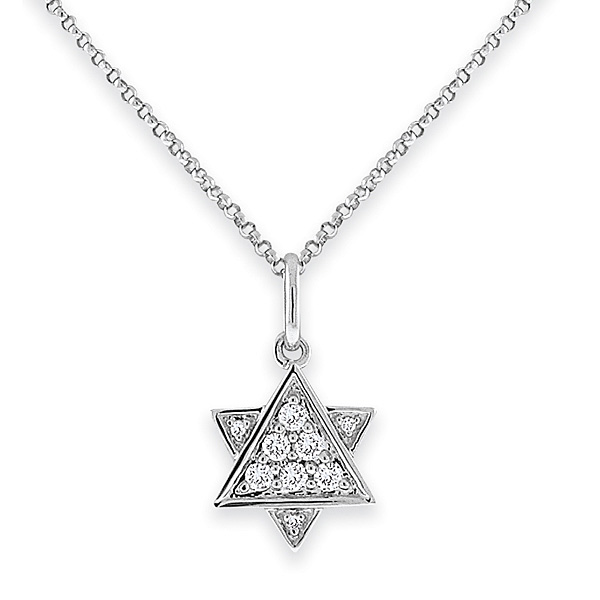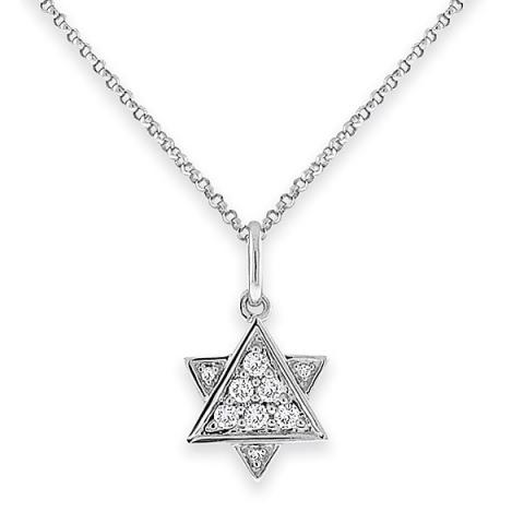 Diamond Jewish Star in 14K White Gold with 9 Diamonds Weighing .13ct tw