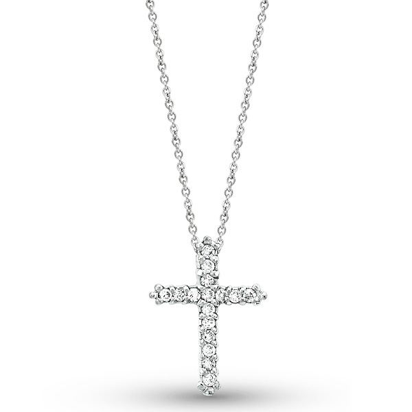 Diamond Cross Necklace in 14k White Gold with 16 Diamonds weighing .18ct tw.