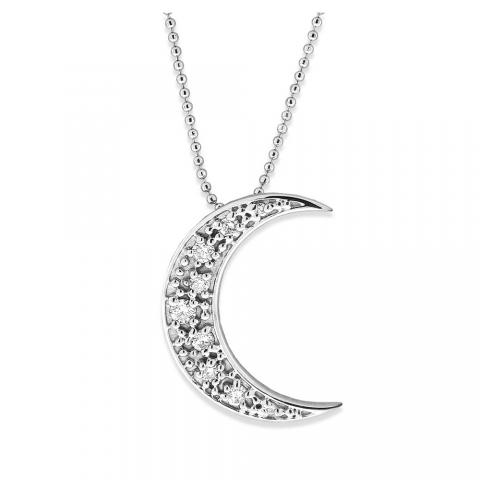 Diamond Moon Necklace in 14K White Gold with 9 Diamonds Weighing .16 ct tw