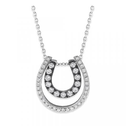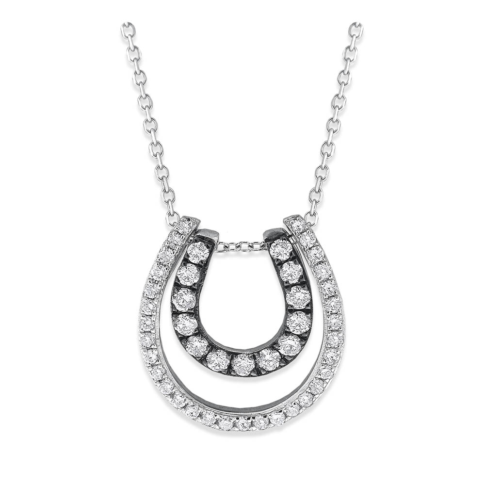 Double your luck with this diamond double horseshoe necklace. Set in white gold with 44 sparkling diamonds weighing .36 ct tw, this is a gorgeous necklace. You will feel like the luckiest gal in the world when donning this stunner.