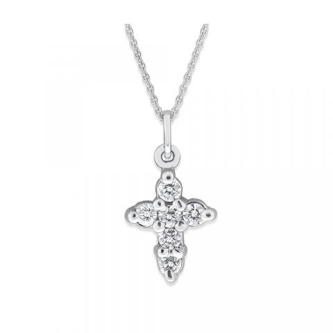 Diamond Cross Necklace in 14K White Gold with 6 Diamonds Weighing .18 ct tw