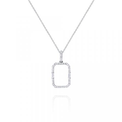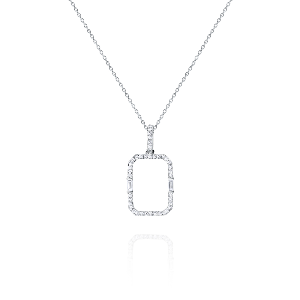 Light up your look with this elegant, & modern necklace. Part of KC Designs Mosaic collection, dazzling round brilliant and baguette diamonds grace a glitzy open frame shape.