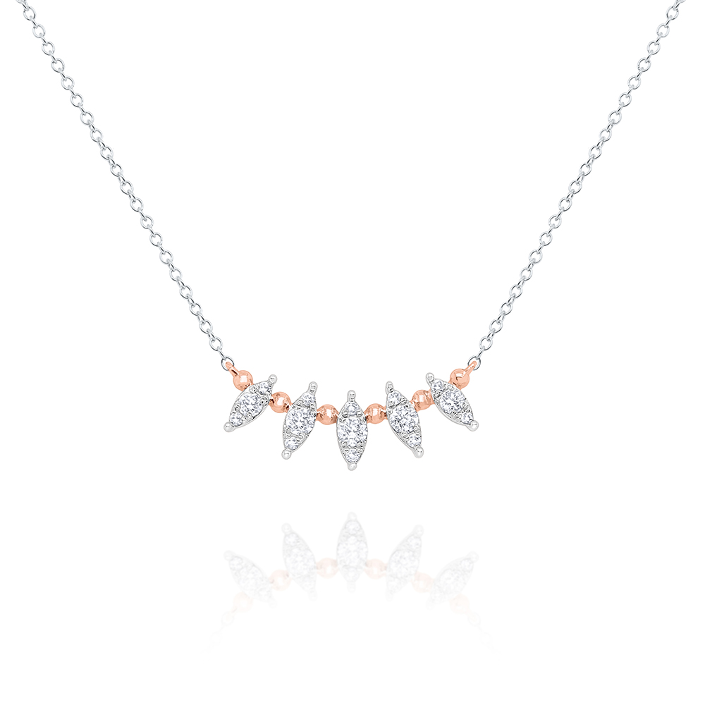 Sparkling diamond marquis shapes create this fresh modern curve necklace, perfect for everyday wear.