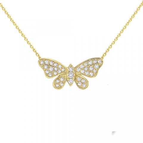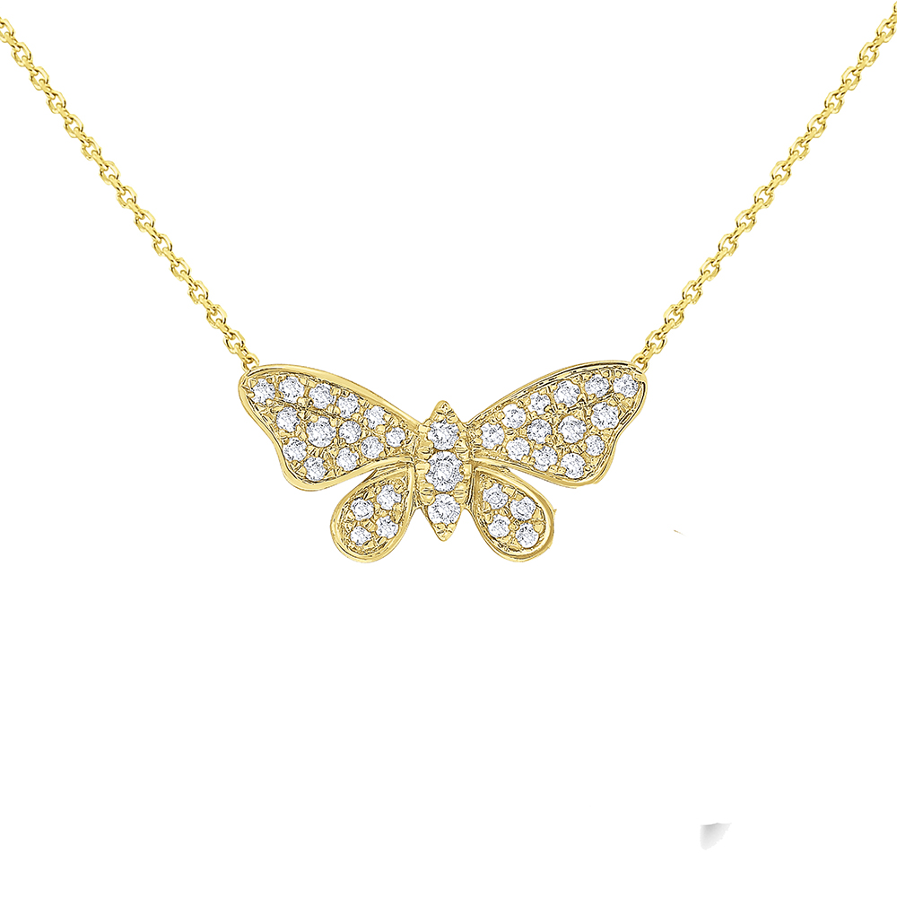 14k Gold and Diamond Butterfly Necklace with Adjustable 18" Chain